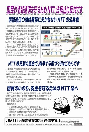 NTT法が軍拡論者や一部の経営者の利益志向により廃止されるなどは決して許されません。