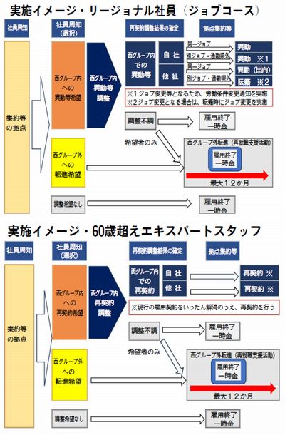 | ■拠点集約で異動・再契約 すべての社員が対象に |