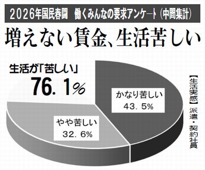 | ◆ | 2026年国民春闘働くみんなの要求アンケ―ト(中間集計) 増えない賃金、生活苦しい |