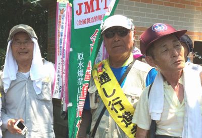 | 7月16日(月)晴れ 豪雨の7日、大阪から川西市へ。 宝塚市への行進は中止となり8日、宝塚市を出発し9日間の平和行進となりました。 JMITUの五十嵐成臣さんが四国の行進を終え兵庫へ合流し、岡山、広島を目指しました。 連日の猛暑を「うた声」で跳ね返し歩きました。 |