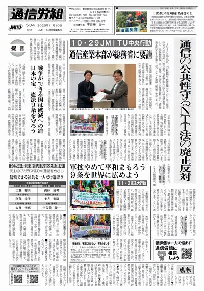 | ◆ | 通信の公共性守るNTT法の廃止反対 10・29JMITU中央行動 通信産業本部が総務省に要請 |